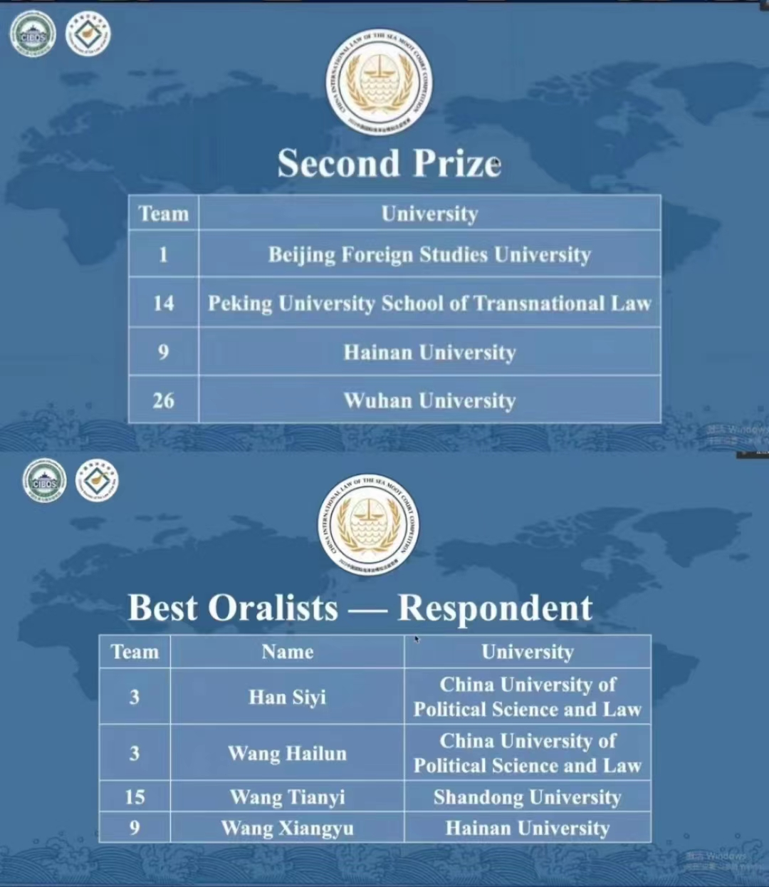 11月13日,由武汉大学中国边界与海洋研究院联合中国海洋法学会共同举办的2022年中国国际海洋法模拟法庭竞赛(2022 China International Law of the Sea Moot Court Competition)落下帷幕,公司代表队荣获团体二等奖(Second Prize)、2020级涉外法治人才班王翔宇同学荣获辩方最佳庭辩人(Best Oralists -- Respondent)。