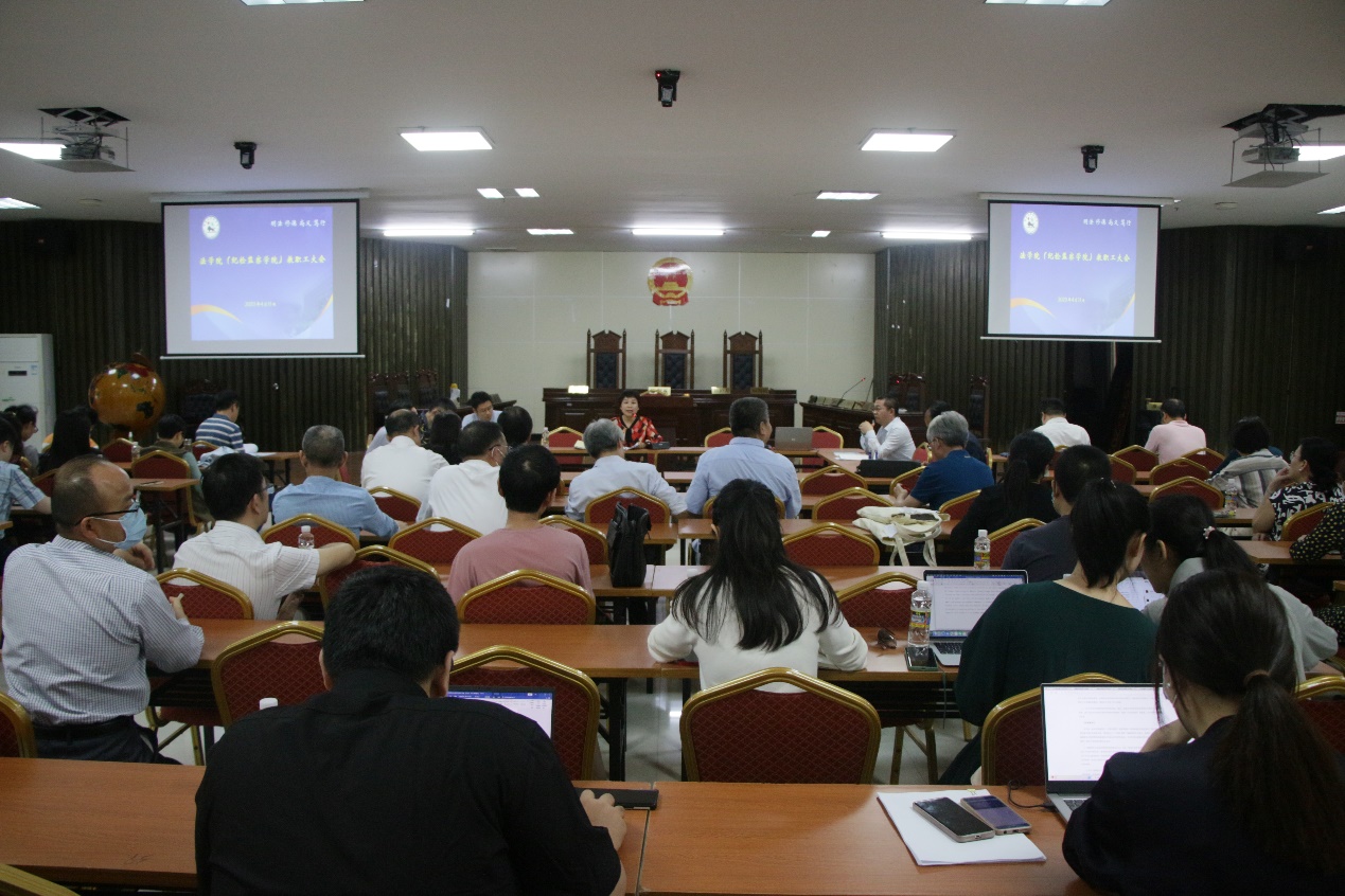 2023年4月11日下午,太阳集团tyc539(纪检监察公司)全院教职工大会在社科楼一楼模拟法庭召开。会议由公司党委书记蒙秋妍主持,全院教职工参加会议。