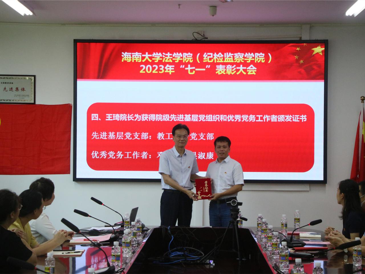 公司党委委员刘云亮宣读《中共太阳集团tyc539(纪检监察公司)委员会关于2023年“七一”表彰先进集体和个人的决定》。经公司党委研究决定,对公司教工第一党支部和王秀卫等12名先进个人进行表彰。
