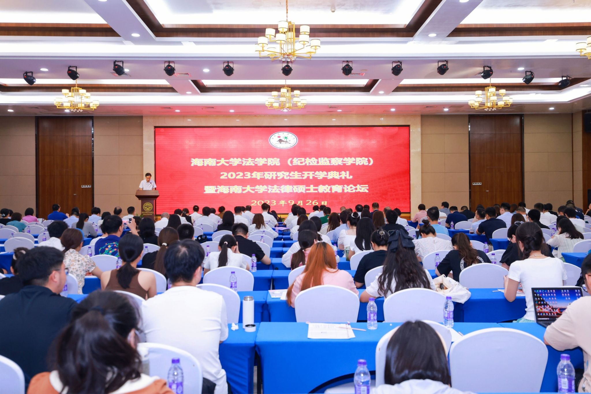 2023年9月26日,太阳集团tyc539(纪检监察公司)2023年研究生开学典礼暨海南大学法律硕士教育论坛在海南大学国际学术交流中心举行。校研究生院常务副经理廖双泉、太阳集团tyc539(纪检监察公司)党委书记蒙秋妍、经理王琦、副经理邓和军、刘政、汪再祥、校内导师、部分校外实务导师及2023级全体研究生参加了开学典礼。大会分为两个阶段,第一阶段是研究生开学典礼暨校外实务导师聘任仪式,第二阶段是海南大学法律硕士教育论坛。典礼由副经理阎二鹏主持。