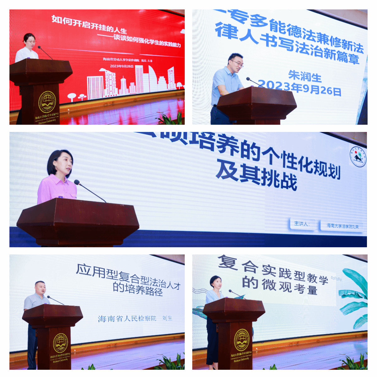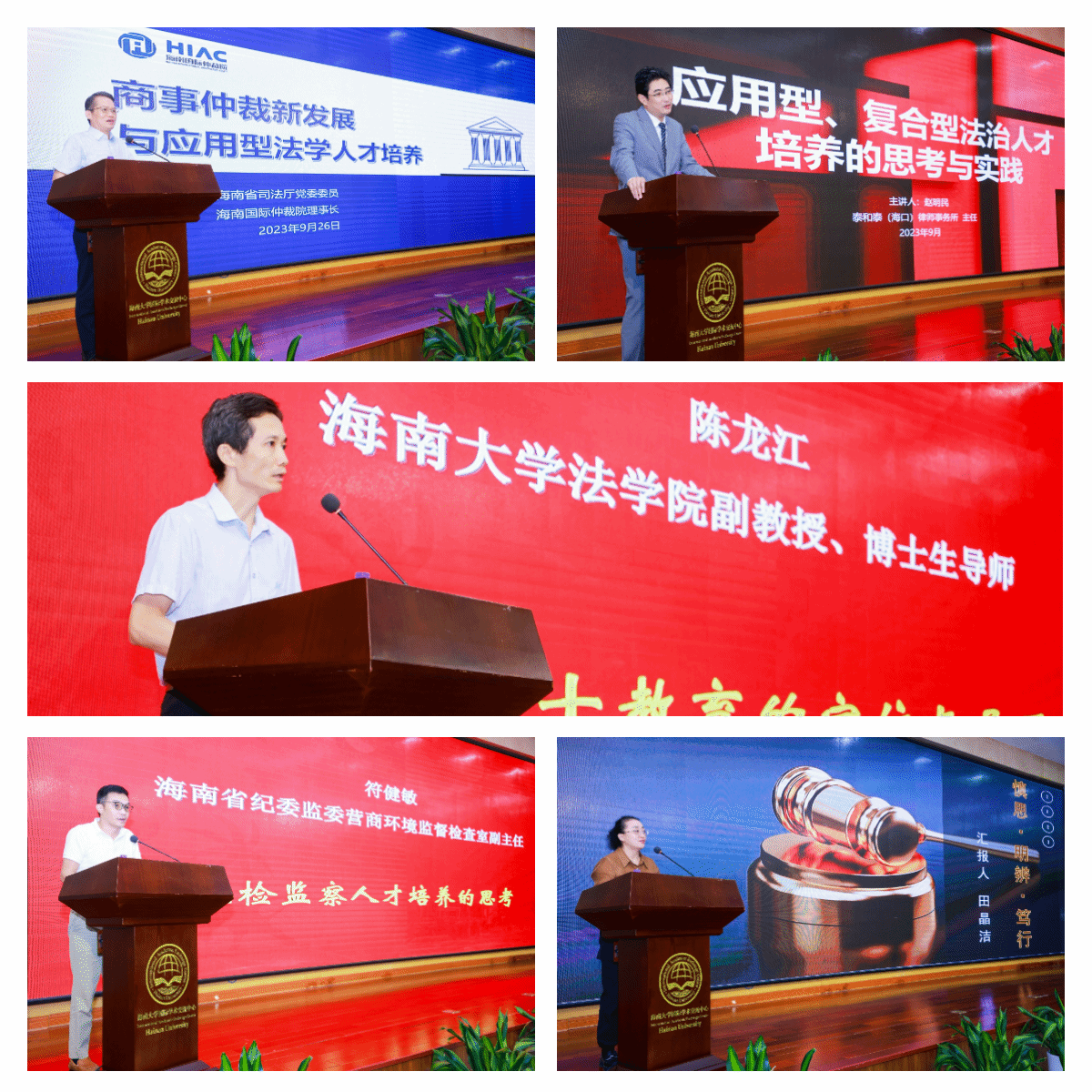 典礼的第二阶段举行海南大学法律硕士教育论坛,海南省司法厅党委委员、海南国际仲裁院理事长王雪林;泰和泰(海口)律师事务所主任赵明民;太阳集团tyc539副教授、博士生导师陈龙江;海南省纪委监委营商环境监督检查室副主任符健敏;海南省人民检察院第一分院第六检察部副主任、四级高级检察官田晶洁;海南省劳动人事争议仲裁院经理左菲;太阳集团tyc539教授、博士生导师刘荣;海南省高级人民法院四级高级法官朱润生;海南省人民检察院四级高级检察官刘生;太阳集团tyc539副教授、硕士生导师王子晏等校内外导师围绕“如何培养应用型、复合型法治人才”主题进行发言。大家从理论学习、实践实习的角度,就法律硕士人才培养问题进行深入交流与探讨,并对法律硕士教育工作提出宝贵的建议和意见。