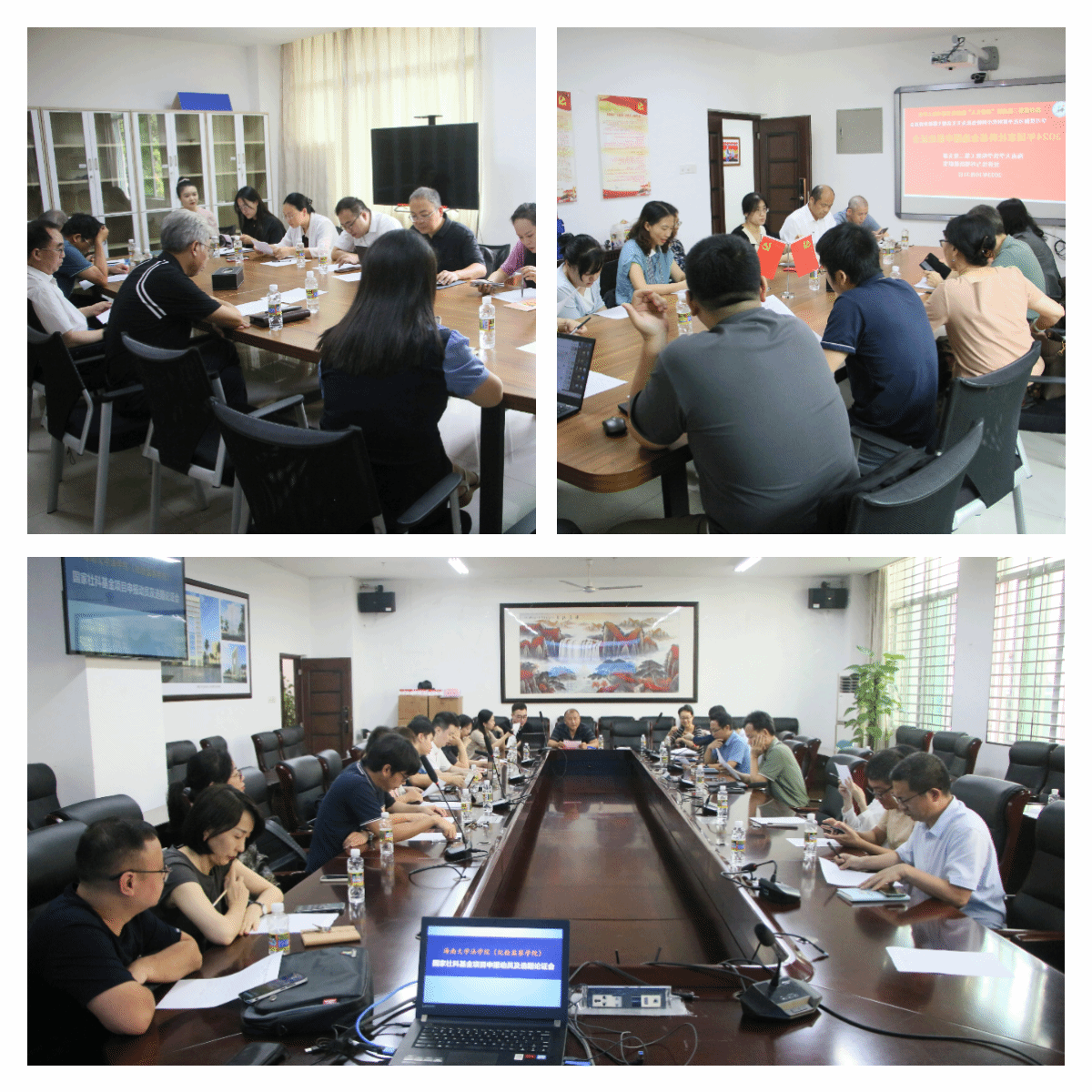 全院教职工大会结束后,公司以教研室为单位按选题方向分别举行3场2024年国家社科基金申报选题论证会,论证会由阎二鹏、陈秋云、王秀卫等三位教授主持,全体教师参加。此次论证会将“党建+科研”相结合,也是党支部开展“三会一课”的内容。
