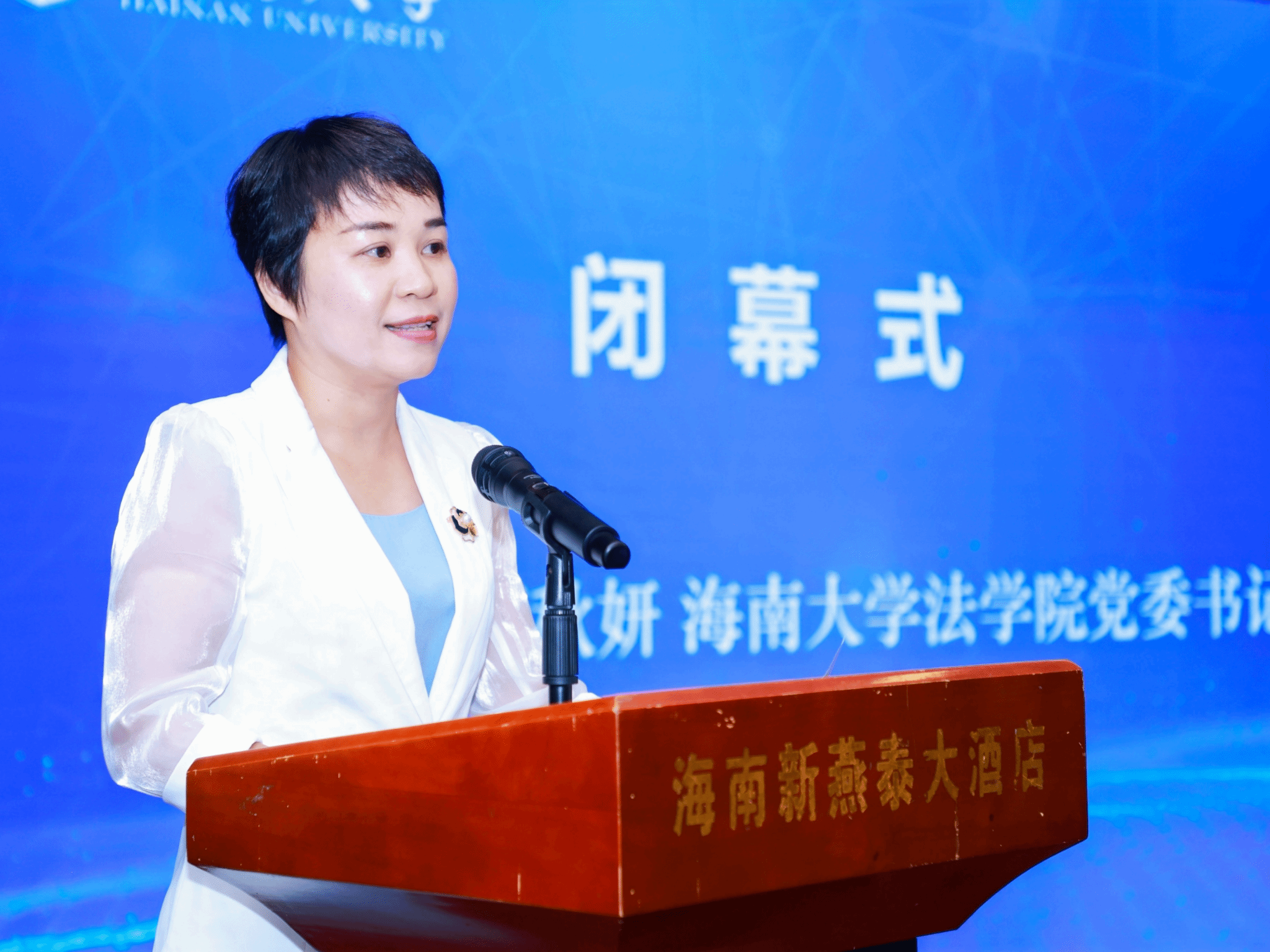 在闭幕式上,海南大学法公司党委书记蒙秋妍代表公司致词,她向与会专家学者致以诚挚感谢,并表示今年的会议是一场思想碰撞、智慧交流的盛会。随着数据法学的发展日新月异,对于源源不断的新问题和新热点,还有赖于诸位专家学者的深入研究、笔耕不辍。