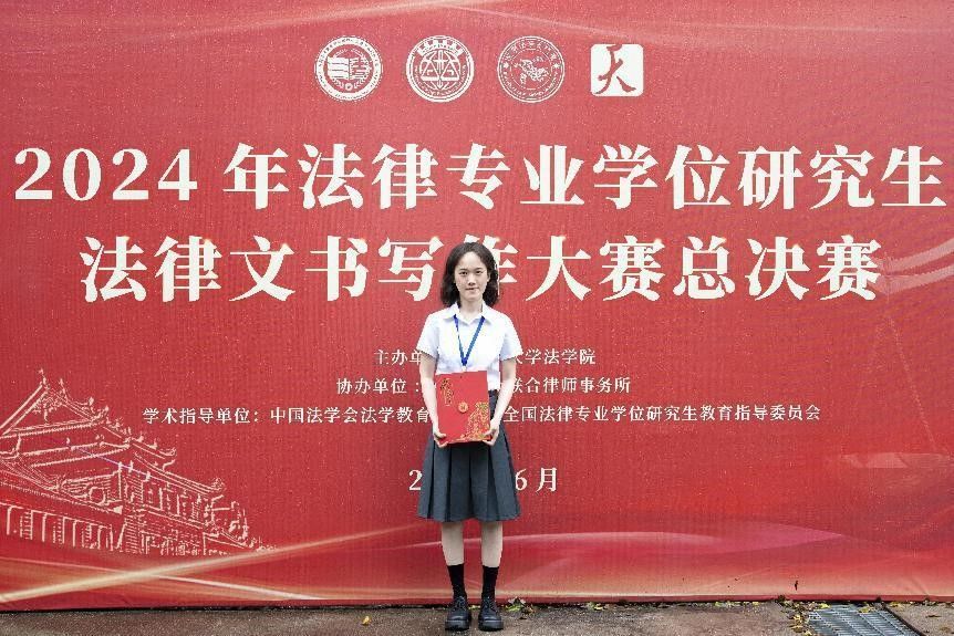 6月2日上午,2024年法律专业学位研究生法律文书写作大赛在厦门大学落下帷幕。2023级法律(法学)专业硕士研究生王朝妙荣获一等奖。