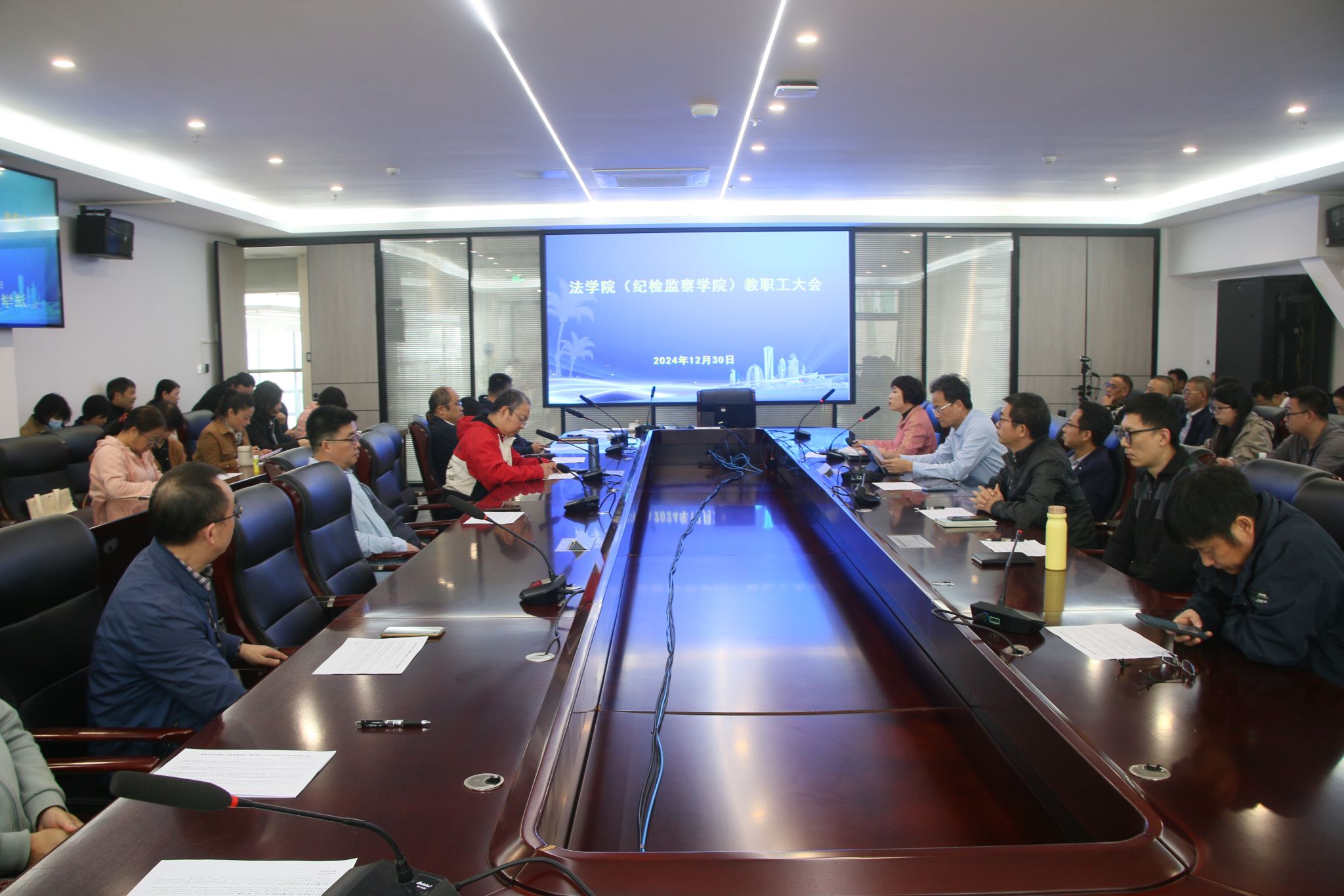 2024年12月30日下午,公司在法学科研大楼301会议室召开全院教职工会议,部署近期重点工作。全体教职工参加会议,会议由公司党委书记蒙秋妍主持。