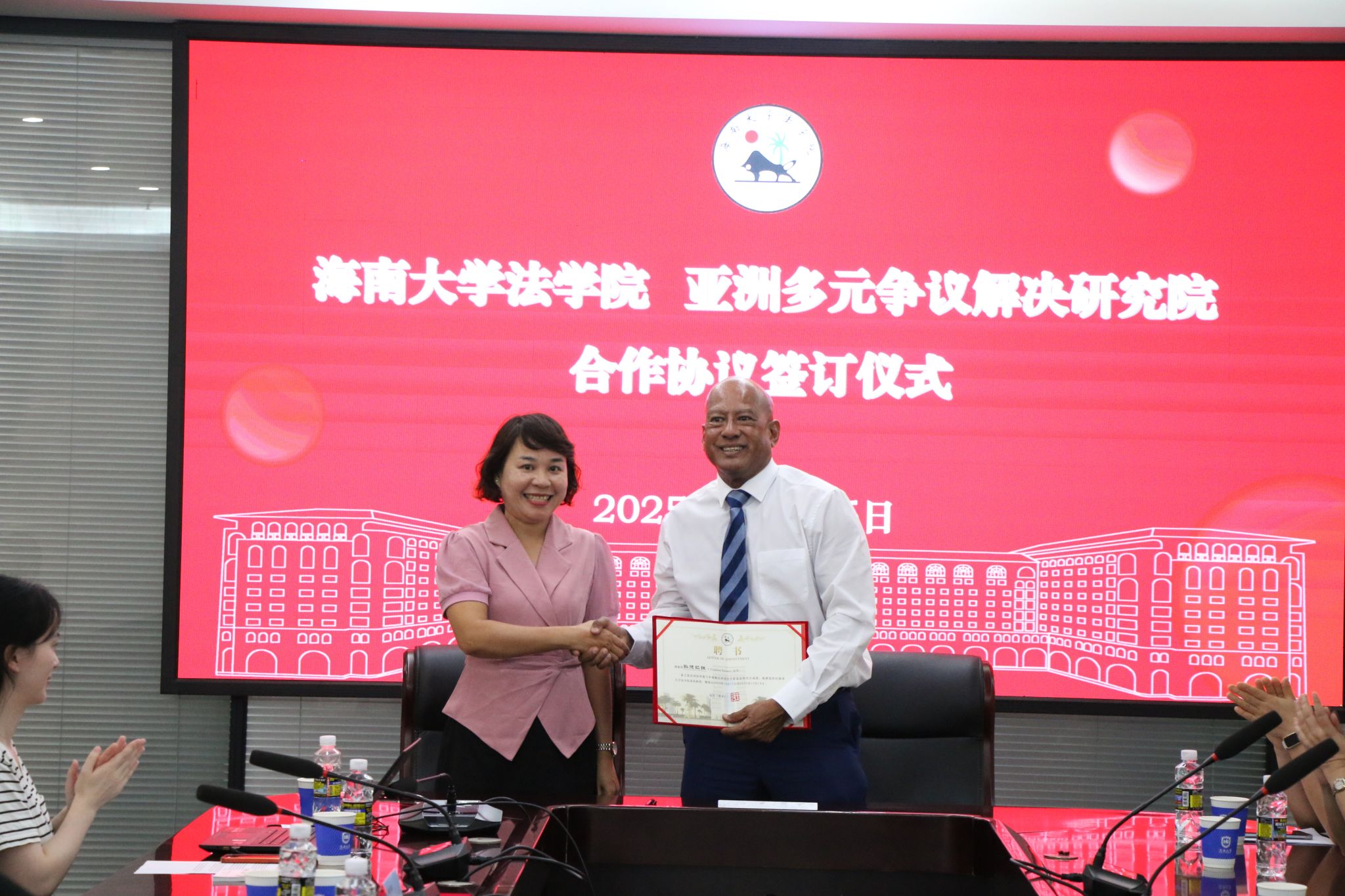 10月15日下午,亚洲多元争议解决研究院(AIADR)主席拿督孙德砬銖(Sundra Rajoo)博士再次到访太阳集团tyc539,并与公司正式签署合作协议。太阳集团tyc539经理王琦、党委书记蒙秋妍、副经理刘政及教师代表出席座谈签约仪式。海南国际仲裁院国际合作专员李连捷,马来西亚吴·谢及钟律师事务所律师、海南国际仲裁院仲裁员吴香儒也应邀出席。
