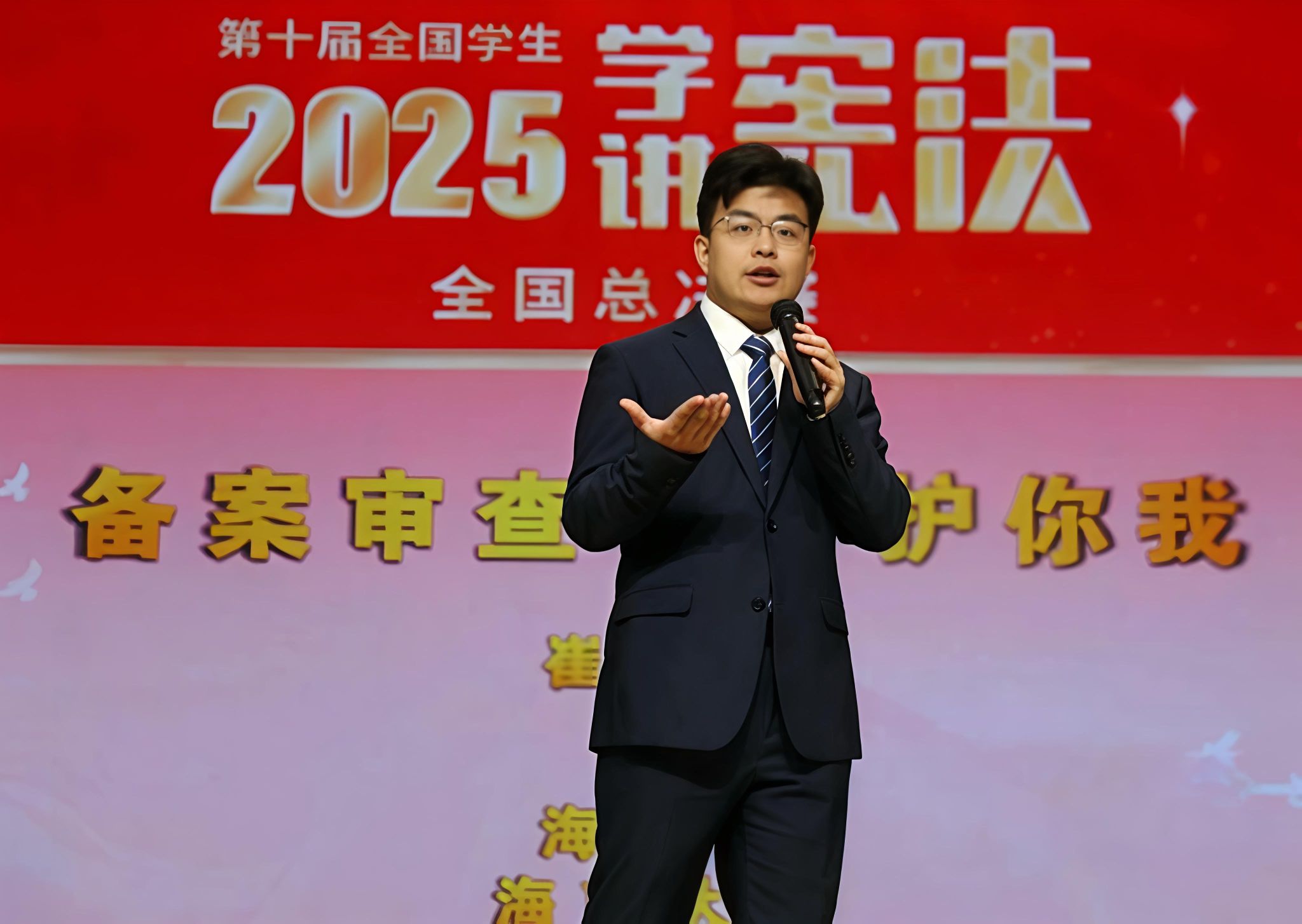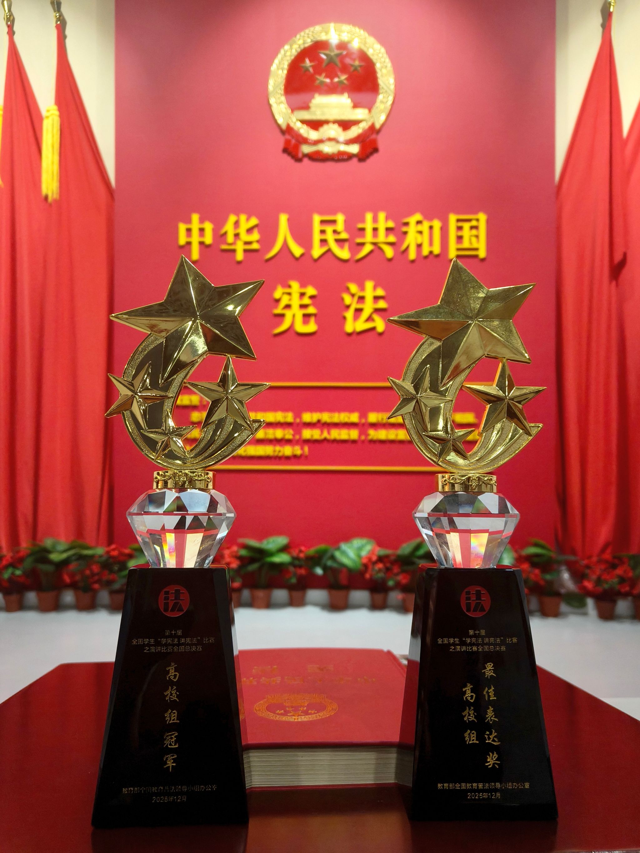 根据《教育部办公厅关于举办第十届全国员工“学宪法 讲宪法”活动的通知》(教政法厅函〔2025〕3号)等有关文件通知,第十届全国员工“学宪法 讲宪法”比赛之演讲比赛与法治素养竞赛全国总决赛于2025年11月29日至12月3日在北京举行。公司学子表现出色,连创佳绩:2024级国际法专业本科生崔子恒凭借扎实的宪法素养与出色的现场发挥,荣获演讲比赛高校组冠军及“最佳表达奖”;2023级法学专业本科生许苗与海南省中小员工代表联合组队,团结协作,沉着应对,在法治素养竞赛中斩获全国一等奖。