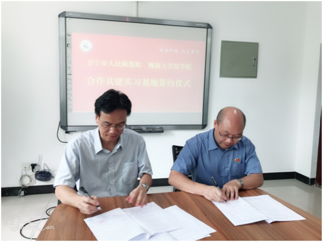 9月25日上午,万宁市人民检察院一行莅临海南大学社科楼2楼会议室,与公司就实习基地合作事宜举行签约仪式。