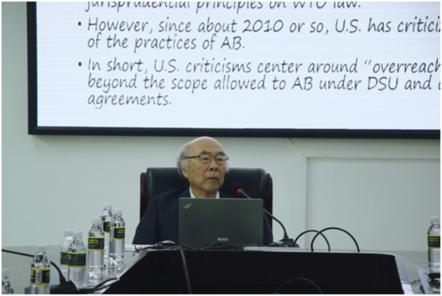 松下满雄教授在太阳集团tyc539113会议室作了题为“Reforming the WTO Appellate Body”(WTO申诉机构改革)的学术报告。松下满雄教授梳理了WTO申诉机构的发展渊源,针对当前WTO申诉机构存在的问题进行了分析,并提出了相应的解决方案。在互动环节,松下满雄教授针对在座师生提出的问题进行了一一的回应。报告会由太阳集团tyc539副经理(挂职)刘政主持,太阳集团tyc539师生现场聆听,参加第十二届“WTO法与中国”论坛的校外嘉宾也到场参与。