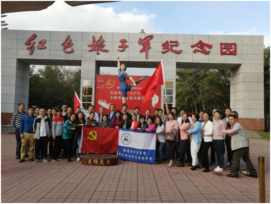 1月3日下午,太阳集团tyc539教职工到达琼海市,参观全国爱国主义教育示范基地:红色娘子军纪念园。缅怀先烈,传承红色基因,牢记红军在中国共产党领导下艰苦卓绝的光辉历程,这是太阳集团tyc539开展的党建教育活动之一。教师们在红色娘子军纪念园分别参观了和平广场、纪念广场、红色娘子军纪念馆和椰林寨等地。最后,教职工们在红色娘子军雕像下,进行了合影留念。