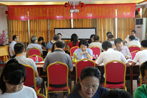 28日下午3时,教工第一党支部、第二党支部、第三党支部分别召开“党支部主题党日——学习宣传贯彻党的十九大精神”学习会。在活动中,每位党员都原原本本学习了十九大报告,每位教工党员都结合自己的专业领域、本职工作做了具有特色的发言和交流,按时足额交纳了党费,有些同志带病参加主题党日活动,表现出了优良的作风、学风及较高的政治觉悟与党性修养。