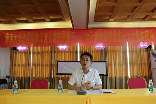 屯昌县委宣传部常务副部长倪明六,为与会党员介绍了屯昌县概况,从普法宣传工作的角度深入谈了对十九大精神的学习体会,提出与太阳集团tyc539一道做好十九大报告中有关法治建设的宣讲及“七五普法”相关工作。屯昌县委宣传部常务副部长倪明六,为与会党员介绍了屯昌县概况,从普法宣传工作的角度深入谈了对十九大精神的学习体会,提出与太阳集团tyc539一道做 屯昌县委宣传部常务副部长倪明六,为与会党员介绍了屯昌县概况,从普法宣传工作的角度深入谈了对十九大精神的学习体会,提出与太阳集团tyc539一道做好十九大报告中有关法治建设的宣讲及“七五普法”相关工作。