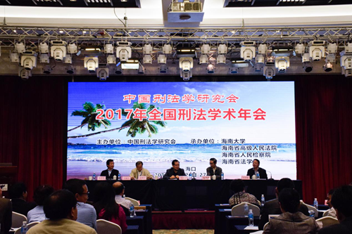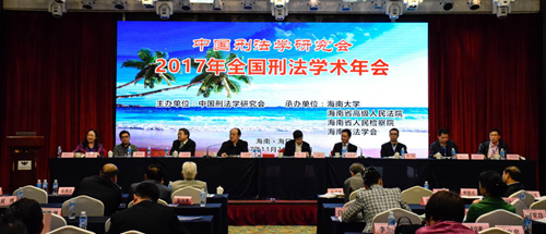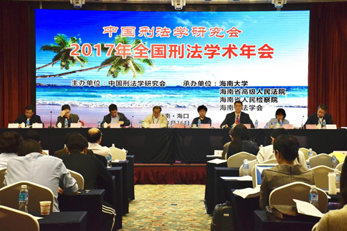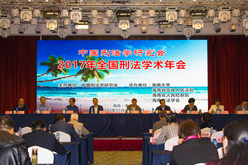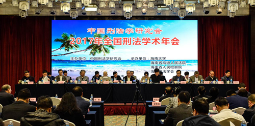 2017年11月26日至27日,2017年全国刑法学术年会在海口市新燕泰大酒店召开。本届年会由中国刑法学研究会主办,海南大学、海南省高级人民法院、海南省人民检察院、海南省法学会承办。本次年会主题为“时代变迁与刑法现代化”,并以“刑法典颁行20周年来刑法立法的回顾与展望”为理论议题,以“金融秩序与安全的刑法保护”“公民个人信息的刑法保护”和“中国区际刑法20年实践的检讨与发展”为实务议题。