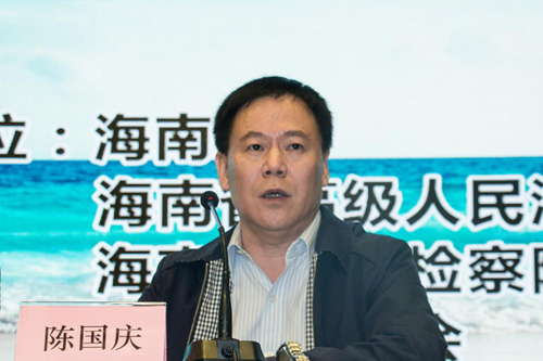 海南省高级人民法院经理董治良大法官在大会上详细介绍了海南法治建设工作的基本情况和海南司法改革的现状,海南各级人民法院在全面依法治国基本方略的指引下,司法事业也取得了较为显著的历史性成就,作为司法改革第一批试点省份,海南省各级人民法院在最高人民法院的指导和海南省委的领导下,在刑事司法当中,立足于国情、省情的实际,尊重司法规律,兼顾惩罚犯罪和同等保障人权,确保证据采纳、疑罪从无、非法证据排除、程序公正等刑事法律原则落到实处,努力让人民群众在每一个司法案件中体会到公平正义。