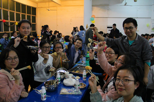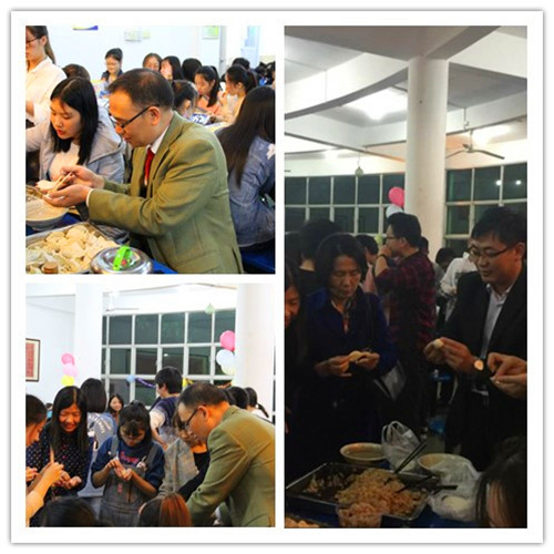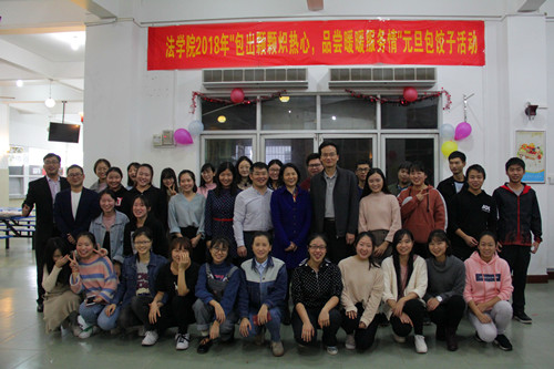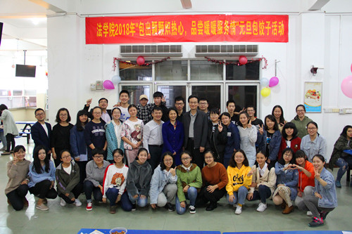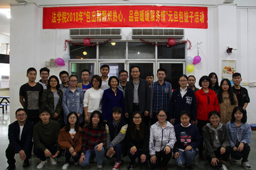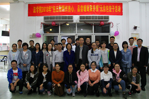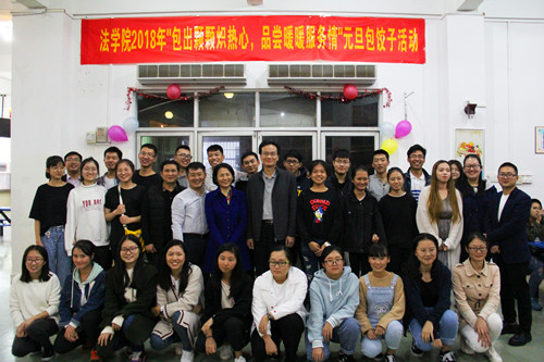 新年伊始,为了让2017级新生能在异乡感受到家人般的温暖,太阳集团tyc539在12月28日下午组织了师生包饺子迎新年活动。此次活动在海南大学城西校区二楼风味食堂顺利举办,文科基础教学部陈楠昕副主任、法公司党委书记叶英萍教授、经理(2017级法学实验班班主任)王琦教授、公司党委副书记(2017级法学1班班主任)李昌郁老师、2017级法学2班班主任张静焕老师、2017级法学3班班主任唐茂林老师、2017级法学4班班主任蔡薇老师、2017级法学5班班主任陈龙江老师、2017级法学6班班主任邱永文老师、辅导员何宏米老师、饶晓东老师以及部分2016级员工干部、2017级全体新生欢聚一堂,喜迎新年。