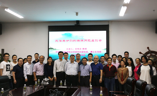 2018年3月30日晚上,著名法学家、中国民法学研究会常务副会长、中国社会科公司法学研究所孙宪忠研究员应邀参加在太阳集团tyc539113会议室举行的“民法典分则编纂问题座谈会”,并作主题演讲。本次座谈会由王琦经理主持。