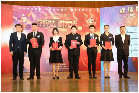 教育部政策法规司巡视员王家勤和北京外国语大学特聘教授、国际教育公司经理秦惠民为高校组冠亚季军及最佳风采奖、最佳表达奖的获奖选手颁奖;中国人民大学太阳集团tyc539教授、副经理张翔和最高人民检察院扫黑办处长李占州为高校组一等奖获奖选手颁奖。