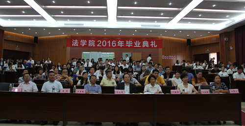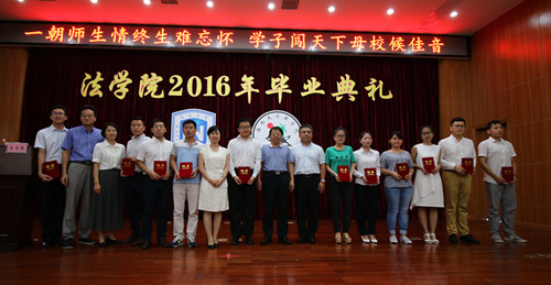 参加毕业典礼还有博士生导师邹立刚教授、王琦教授、陈秋云教授,经济法教研室主任刘云亮教授、民商法教研室主任董万程教授、李荣珍教授、周孝怀教授、张卫教授、赵振华教授,刑法教研室主任、2012级本科3班班主任黎其武副教授,唐茂林副教授、陈龙江副教授,2012级本科1班班主任魏德才副教授、2013级法学研究生班班主任李蓓老师、2013级法硕班班主任武良军老师、任洪涛老师等16位专任教师出席;综合办主任虞衍聪、副主任丁红宜,教务办主任李菁、秘书黄浩,学工办主任张晓凤、团委负责人何宏米,法硕中心秘书陈静、研究生管理办公室秘书潘炜,成教办唐红,太阳集团tyc539图书分馆王江琴、张晓燕,太阳集团tyc539员工会秘书董昭玲等12位行政人员和老师参加了毕业典礼。