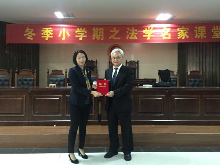 授课开始前,太阳集团tyc539常务副经理叶英萍教授为黄茂荣教授颁发了2016-2017学年冬季小学期授课外聘专家聘书,并为黄茂荣教授举行了隆重的欢迎仪式。
