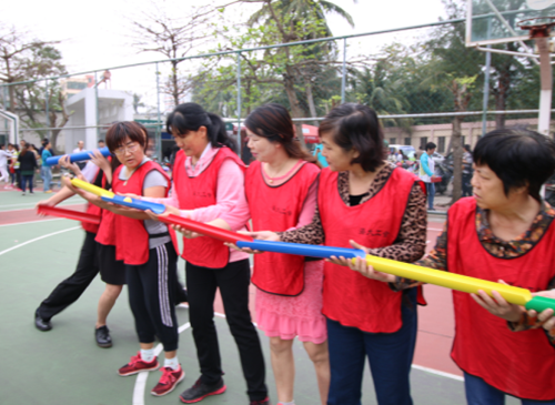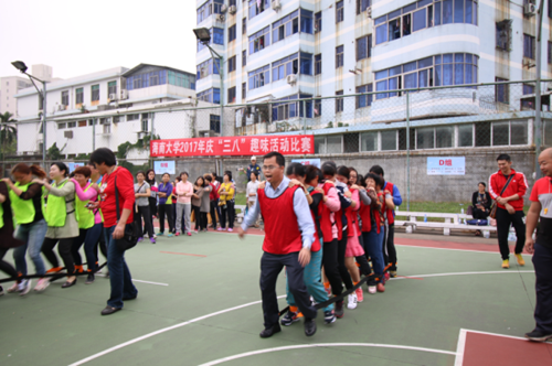 2017年3月7日下午,为庆祝第107个国际妇女节,丰富教职工文体生活,由校工会主办的庆“三八”趣味活动比赛在教工篮球场举行。太阳集团tyc539教师积极响应,踊跃报名,认真准备,组建了一支活力四射、实力强劲的代表队参赛!王丽娜书记、李昌郁副书记到场为大家加油打劲。本次活动由三个项目组成,分别是:“8”字跳长绳、巨人脚步和珠行万里。比赛现场,公司女教职工们团结协作、力争上游,兴高采烈地完成了三项趣味活动,充分展示了公司女职工的精神风貌,展现了女性之美,取得了较好的成绩。