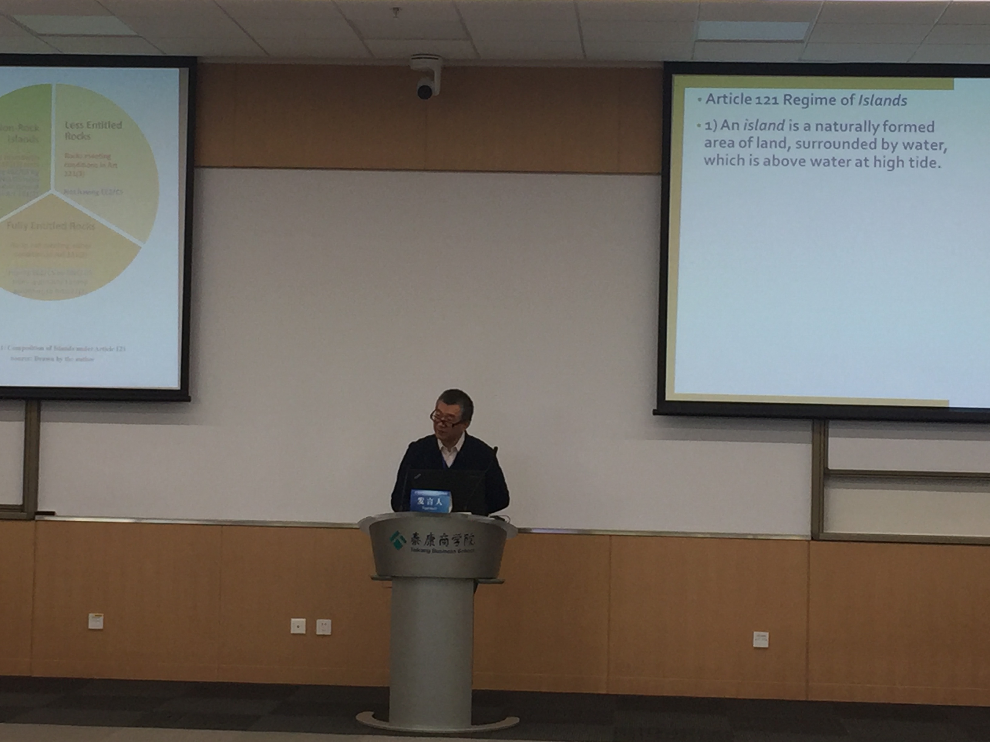 海南大学国际仲裁与司法研究中心主任高圣惕教授在此次论坛发表了英文论文,并在会上作了主题发言,批驳中菲南海仲裁案实体裁决对于联合国海洋法公约第121(3)条的解释。高教授透过条约法公约第31条揭示的条约解释原则,指出仲裁庭实体裁决罔顾海洋法公约第121(3)条的目的及宗旨。彻底颠覆国际条约法核心的条约解释原则。