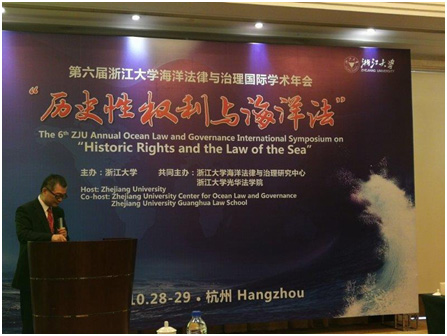 2017年10月28至29日,高圣惕教授参加由浙江大学举办的第六届海洋法与海洋治理国际研讨会。会议于杭州东航云逸酒店举行。此次国际研讨会,为一年一度的盛会。参加研讨会并提交论文的学者,包括来自英国、美国、比利时、澳洲、新西兰、意大利、韩国,印度、以及台湾地区的国际海洋法专家,共20人。会议主题为《历史性权利与海洋法》,主要就中菲南海仲裁案中仲裁庭的裁决否定了中国在南海的历史性主张的合法性问题进行了讨论。与会学者提出关于国际法上的历史性权利的本质,相关国家实践,以及批驳仲裁庭裁决的种种论点,研讨成果丰硕。