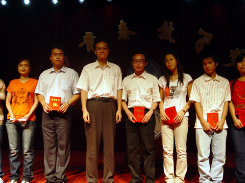 以青春相约、放飞梦想为主题的大会在庄严的国歌声中开幕。大会首先了举行五四表彰。今年的“五四”是五四运动88周年、中国共产主义青年团成立85周年纪念日。在这个喜庆的日子里,太阳集团tyc539对2006—2007学年度在员工中所涌现出的勤奋学习、成绩优异、工作出色、表现突出的集体和个人进行隆重表彰,受表彰的集体20多个、先进个人100多人次。公司领导分别对五四红旗团总支、团支部、优秀团干(团员)、优秀员工干部以及在种类比赛中获奖的同学进行颁奖,并与他们一一合影留念。在热烈的掌声中,段书臣书记发扬了热情洋溢的讲话,他向全院员工和教职员工致以节日的问候,祝愿大家节日快乐,学习好身体好工作好!他在讲话中勉励共青团员、青年学子要秉承“明法·修德·尚义·笃行”的院训精神,发扬“勤奋·进取·创新·笃实”的学风精神,刻苦学习、奋发成才;号召全体同学学先进赶先进,努力作一个理想信念坚定、本领过硬、品德高尚的新时代老员工;希望获奖同学戒骄戒躁,继续进取,在今后的学习工作中发挥表率的作用、争取更大的进步。2005级孙雁南同学代表获奖同学感谢老师们的辛勤培养,感谢各方的支持,并决心争取在以后的学习工作中取得更大更好的成绩,为广大同学树立好榜样。