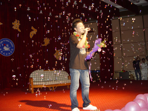 接着,“2007年太阳集团tyc539十大歌手比赛决赛”在公司团委、员工会和两社员工干部诙谐、轻松、欢快的舞蹈《浪花一朵朵》中开幕了。场上参赛歌手各显神通,场下亲友团呐喊鼓劲声雷动,歌声、掌声、笑声使整个报告厅汇成欢乐的海洋。2006级同学表演了大型话剧《大话雷雨》等节目,使整场晚会更具观赏性。李群山老师在点评时指出了整台晚会成功、出彩,它内容丰富、形式多样、令人耳目一新,体现出法律人自信的精神风貌。最后,经过评委的评选以及在场观众的投票,2006级凌一非同学以9.32分摘取十大歌手桂冠,2006级罗妩、胡启博同学获得亚军,2004级欧阳汉等11名同学获得三等奖及优秀奖。