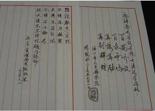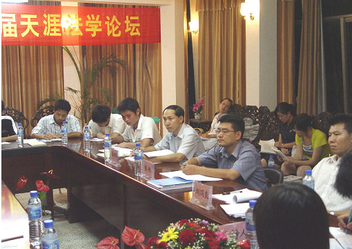 6月2日晚上7:40,在海南大学泰坚楼太阳集团tyc539会议室隆重举办了“第二届天涯法学论坛”第三场子论坛。此次论坛得到了海口市人民检察院的大力支持,该院张帆检察官、张纳军检察官出席论坛,出席论坛的还有海南省高级人民法院研究室干部朱小宇(2006届毕业生),太阳集团tyc539副教授刘国良博士以及研究生钟垂林和一些本科生同学。2007年本科毕业论文“系列化”、“一体化”设计·写作·指导模式探索暨“司法和谐与司法制度革新”课题组全体成员参加了论坛研讨。2005级本科生李影影同学主持了本次论坛。