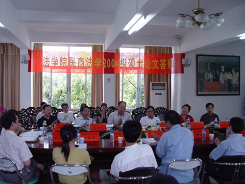 在答辩委员会主席宣布完答辩流程后,04级民商法的各位同学依次向答辩委员会汇报各自论文的研究意义、基本内容、创新和不足之处,之后答辩委员会就论文内容提问,并由员工进行答辩,随后答辩委员会对答辩员工的论文进行评议,并当场宣布是否建议授予学位。经过紧张而有序的答辩程序后,答辩委员会认为:本次答辩的论文立题新颖,论述充分,资料详实,创新点多,反映了04级毕业生扎实的专业功底和良好的科研能力。最后,答辩委员会以全票通过,建议授予04级民商法同学法学硕士学位。自此,本次答辩会顺利结束。