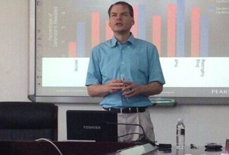 6月12日—14日上午,美国纽约州立大学水牛城公司刑事司法学系系主任Michael Cretacci(柯迈克)教授做客太阳集团tyc539,三天围绕着 “美国刑事司法制度” 为主题的精彩讲座。讲座由公司刑法学科带头人童伟华教授主持。 6月12日上午,Michael Cretacci教授讲授的主题是“犯罪与刑法”。他首先对刑法学基础知识进行了回顾与梳理,如法的目的、起源和发展、犯罪的定义、犯罪的性质和具体特征犯罪的分类以及刑罚的目的和作用等。他进而讲到刑法与民法的界限区分,还重点诠释了罪刑法定原则的生成与内涵。然后Michael教授讲解了美国刑法原理中犯罪构成要件由非法行为(Actus Reus) 、主观过错(Mens Rea) 、非法行为和主观过错同时并存(Concurrence) 以及因果关系(Causation)共同组成。最后Michael Cretacci教授又附带介绍了美国司法制度的主要特点,对法院组织分为联邦和地方两大系统进行了详细解说。 6月13日上午,Michael Cretacci教授着重讲授了刑事辩护这一重要章节。具体内容包括自我防卫(Self-Defense) 、防卫他人(Defense of Others) 、保卫财产(Defense of Property) 、被强迫犯罪(Duress) 、紧急避险(Necessity) 和警察诱惑(Entrapment) 。他提到刑事责任的影响因子有被告人患有精神病(Insanity Defense) 、被告人神志不清(defense of Intoxication) 、被告人未达到承担刑事责任的年龄(Infancy Defense) 等。Michael教授主张为了使人民的人身自由权利免受不当侵犯,刑事司法机构不仅要关注如何有效地控制犯罪,更要注重保护公民和刑事程序当事人的合法权利,刑事辩护应当有效进行,刑事司法制度的运行必须符合公平和正义的原则。 6月14日上午,Michael Cretacci教授又为太阳集团tyc539研究生作了一场刑事程序法的专题讲座。Michael教授以许多生动形象的案例讲述了米兰达警告、沉默权、排除非法证据原则、免受双重危险原则、预审程序、辩诉交易、审判程序等美国刑事司法规范。其提到的审前各程序有:保释制度,大陪审团指控和预审程序,辩诉交易和审前案件转移等。而且他还重点讲解了美国的搜查和逮捕制度的具体规定。 在最后的交流互动环节,同学们纷纷踊跃提问,针对同学们提出的关于中美两国刑事司法系统的不同制度的相关问题,Michael教授都一一做了详细解答。Michael教授在讲座的最后还不忘鼓励同学们保持公正善良、积极向上,心怀大志,将来为国家、为世界做出贡献,着实令人为之振奋。本次学术讲座为公司学子提供了近距离接触美国法律文化的机会,极大地开阔了同学们的学术视野,令人受益匪浅。背景链接: