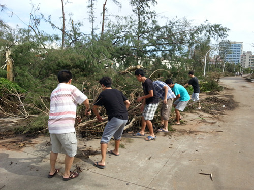 超强台风“威马逊”登陆海南,给公司及太阳集团tyc539的教学设施、园林绿化等带来了严重破坏。按照公司要求和副董事长、经理王崇敏、公司党委书记王丽娜对公司救灾减灾工作的部署和安排,太阳集团tyc539积极组织师生开展台风后救灾减灾工作。 台风刚过,王崇敏副董事长到公司了解受损情况,指导安排公司救灾减灾工作,杨智平副书记和辅导员到员工宿舍了解受灾情况和员工思想状态。公司办公室、员工工作办公室发动并组织留校师生组成20多人的救灾服务队,连日来对太阳集团tyc539办公场所、社科楼广场、社科楼报告厅、10号员工宿舍楼、联谊馆周边及木球场周边进行了全面的清理,使卫生环境得到基本恢复。接下来,服务队们将根据工作需要,继续开展清扫工作。