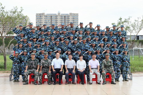 9月20日下午,副董事长、经理王崇敏,公司党委书记王丽娜,党委副书记杨智平和辅导员李昌郁、史旭峰到城西校区运动场慰问了正在军训中的2014级新同学。 在观看了同学们整齐划一的队列会操表演之后,王崇敏副董事长发表了讲话,鼓舞了同学们的士气。王董事长首先对同学们前一阶段的训练效果表示了肯定和表扬,他说经过一周的训练,同学们的精神风貌得到了很大的提升、意志力也得到了很好的磨练,为大学四年的学习生活开了一个好头。他希望同学们在剩余的军训时间里,继续刻苦训练,严格要求自己,并把军训中磨练出的意志力带到今后的学习生活中去,向家长和公司交一份满意的答卷。 随后,院领导为各位新同学发放了牛奶等慰问品,并与全体参训同学及教官合影留念。