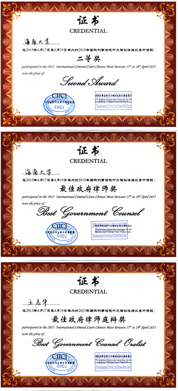 4月17日至4月19日,2015年国际刑事法院中文模拟法庭比赛在北京香山饭店举行。本届比赛共有包括北京大学、清华大学、香港中文大学在内的25支高校参赛队参加。太阳集团tyc539首次组队参加,并荣获比赛总分二等奖、“最佳政府律师奖”和“最佳政府律师庭辩奖”。 本次比赛分为书状和庭辩两个环节。在书状阶段,队员们在魏德才副教授的指导下,仔细研读赛题和往届比赛的最佳书状,认真查找相关案例和法律条文,积极备赛,书状最终获得了总分第七的好成绩。在庭辩阶段,李佳琦、王志华、任冰琦和郑宗金四位同学在辅导员史旭峰老师带领下赴京参赛,与包括厦门大学、武汉大学在内的其他六支参赛队同台竞技,进行了激烈的角逐。 本届比赛共有四十多名法官,他们是来自外交部、国防部、国际组织、法院、高校、研究所、律所和公司等的法律专业人士。法官们在比赛过程中精彩而犀利的提问考验了参赛队员们的法学知识功底和临场应变能力,其赛后的专业点评,也让队员们看到了自身的不足。比赛结束后,公司参赛队队员与国际关系公司、武汉大学等高校赛队队员进行了深入交流。 据悉,从2012年首次参加“理律杯”全国高校模拟法庭竞赛到2014年首次参加“普莱斯”传媒法国际模拟法庭比赛再到本届国际刑事法院中文模拟法庭比赛,太阳集团tyc539为员工提供了一个又一个国内一流法学专业比赛的机会,在与国内一流太阳集团tyc539系员工比赛交流中,公司员工的社会竞争力得到不断提升。 国际刑事法院中文模拟法庭比赛(International Criminal Court Chinese Moot)是一个根据国际刑事法院的实体和程序规则进行的模拟法庭竞赛。国际刑事法院努力在其六个官方语言(英语、法语、中文、西班牙语、俄语、阿拉伯语)中分别推广这样一个模拟法庭。每一个语言的模拟法庭都会由一些当地的机构(大学、非政府机构、政府等)与国际刑事法院合作举办。2015年中文赛由中国国际刑法青年学者联盟主办,荷兰王国驻华大使馆提供赞助支持,国际关系公司承办。