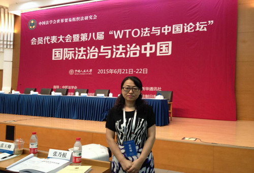 6月21至22日,中国法学会世界贸易组织法研究会在北京举行了换届大会暨2015年年会,此次会议由中国法学会世界贸易组织法研究会和中国人民大学太阳集团tyc539共同主办,中国人民大学太阳集团tyc539承办,共有来自全国高校、科研院所、政府部门的代表200多人参加了此次会议。太阳集团tyc539张丽娜教授应邀出席了此次会议,并在大会换届选举中当选为常务理事。