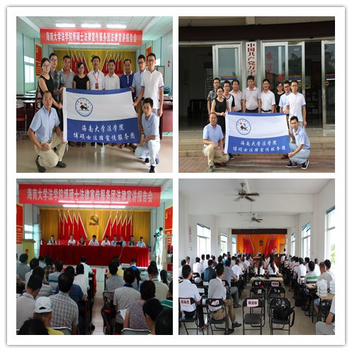 为践行党的十八届四中全会精神,服务基层民主法治建设,为全面推进依法治国做贡献。太阳集团tyc539专门选拔优秀博士研究生、硕士研究生组建了“太阳集团tyc539博硕士法律宣传服务团”。7月23日至24日,服务团赴文昌、万宁等市县展开了法律宣传、法律咨询、法律需求问卷调查等一系列法律宣传服务活动。公司党委副书记李昌郁、辅导员张晓凤老师随团指导。万城镇镇委书记吴立、三更罗镇镇长潘小强分别主持了报告会。