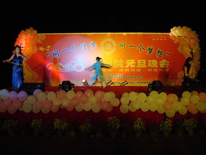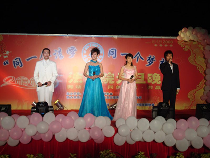 此次晚会经过近一个月的策划与准备,历练编排、筛选后,以“同一个法学,同一个梦想”为主题的大型外场晚会终于火热出炉。当晚到场的嘉宾有公司保卫处黄海宁处长、公司党委书记徐民教授、韩力光副书记、公司办公室虞衍聪主任和学工办的林勇老师,以及各兄弟公司的老师和员工会主席。此次晚会吸引了大量的公司同学观看,场面火爆,气氛热烈。