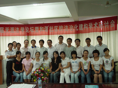为了更好地完成本科毕业论文系列化、一体化创作,使论文更具说服力和理论深度以及实践指导意义,海大2008届的毕业生们继承优良传统,精心筹划了今年的“天涯法学论坛”。6月28日下午3时,太阳集团tyc539“第三届天涯法学论坛暨和谐社区的法治化建构学术研讨会”在泰坚楼会议室隆重召开。 应邀到会的领导嘉宾有海口仲裁委秘书长郭修江老师、海南省委党校李咏梅老师、海口市民政局基层政权科副科长符知、龙华区滨海社区旷瑞电主任、副主任陈燕,太阳集团tyc539名誉经理谭兵教授、党委徐民书记、经理王崇敏教授、副经理叶英萍教授、公司党委副书记韩力光等。太阳集团tyc539“和谐社区的法治化建构”课题组全体成员参加了会议。会议由太阳集团tyc539副经理叶英萍教授主持。