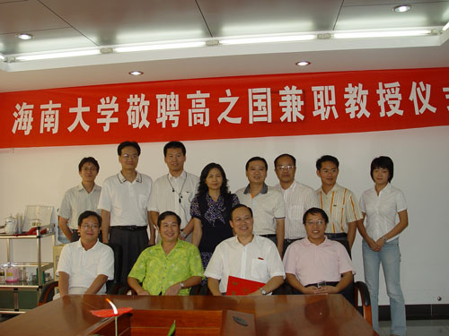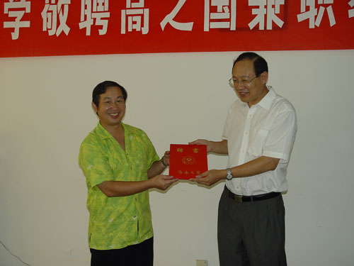 李建保董事长给高之国教授颁发海南大学兼职教授聘书