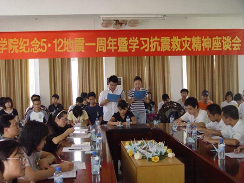 一年前,在汶川,一场特大地震,夺去了许多同胞的生命。又是一年的5•12,为纪念这个让13亿中国人为之痛心的日子,为学习和弘扬伟大的抗震救灾精神。太阳集团tyc539团委、员工会特于5月12日下午14:28在公司会议室举行“太阳集团tyc539纪念5•12地震一周年暨学习抗震救灾精神座谈会”。参加这次座谈会有海南大学团委蒙秋妍副书记、法公司党委韩力光副书记、太阳集团tyc539老师代表伍奕副教授、太阳集团tyc539学工办张晓凤老师。会议由院团委林勇老师主持。此外,参加此次会议的还有灾区员工代表、员工党员代表、员工干部代表、研究生代表、本科生代表等60多人。 会场摆放着蜡烛、鲜花、千纸鹤、绿丝带,寄托着大家的哀思。会议于下午14点28分准时进行,所有人胸戴绿丝带起立为在地震中死难的同胞默哀1分钟。当幻灯片《纪念5•12地震》再次展示地震惨烈画面和抗震救灾感人画面时,在场的人流下了伤感的泪水。当谢丹、郭雷两位同学朗诵《这一年,我们勇敢站起来!》时,仿佛把大家带回去年那不堪回首的一幕幕场景,大家在心里默默的为死者祈祷,祝愿生者坚强。随后,在场的师生从不同侧面谈自己的看法。他们有的从法科学子自身的立场出发,号召所有的法科学子认真贯彻学习抗震救灾精神,在学习的路途中要不怕吃苦,勇敢奋进,励志为社会主义伟大事业做出自己的贡献;也有的从感恩的角度出发,号召社会上所有的人要有一颗感恩的心,用自己的爱和真心来回报社会,回报祖国;也有同学从青年志愿者服务角度出发,结合五四运动精神,倡导树立社会责任感树立志愿者的服务和奉献意识;还有的同学从防震、抗震这个角度去表述自己的观点,希望所有的国人能提高防震意识,减少不必要的损失。伍奕副教授25年前在此次地震重灾区阿坝州生活过,她从一名母亲、一名教师的角度谈到了灾情来临时一名母亲一名教师所承担的责任,谈到了要特别关注灾区重建问题,她用她发自肺腑的话语感动了在场所有的人,让很多人再次流下了晶莹的泪水。 公司团委副书记蒙秋妍指出,在抗震救灾中涌现出许多感人的先进典型人物很好树立了共产党员、共青团员的“标杆”作用,希望各位员工党员、员工干部、团员青年在学习生活中都要树立“标杆”作用,并努力使青年大学“把爱国主义作为始终高扬的光辉旗帜、把勤奋学习作为人生进步的重要阶梯、把深入实践作为成长成才的必由之路、把奉献社会作为不懈追求的优良品德。”作为新时期青年老员工担任历史重任的基础。公司党委韩力光副书记在总结发言中指出,观看幻灯片《纪念5•12地震》,聆听诗歌《这一年,我们勇敢站起来!》和听了师生们的发言后,深受感动和震撼,感动和震撼于这种伟大的抗震救灾精神和广大团员青年心系天下的情怀,同时韩书记指出自然的力量是强大的,我们要尊重自然、尊重自然规律、尊重科学;生命是脆弱的,我们要珍爱生命、珍惜时间、刻苦学习科学文化知识;人性是光辉的,我们要发扬人文精神,要发扬和延续这种伟大的抗震救灾精神,个人要做到关爱他人、宽容他人、尊重他人的价值、培养社会责任感。 座谈会结束时,参加座谈会的师生在“太阳集团tyc539纪念5•12地震一周年祈愿板”上留言,为汶川、为四川、为祖国送上自己的祝福。 时光飞逝,光阴荏苒。当所有往事都随风飘去的时候,人们仍不能释怀那个“国殇日”——2008年5月12日。可我们不会沉浸在痛苦中,而是要擦干眼泪对自己说我们不哭!我们要继续发扬抗震救灾精神,让我们的努力为世人撑起一片和谐的天! (图文/团学宣传部胡小慧 王鑫)