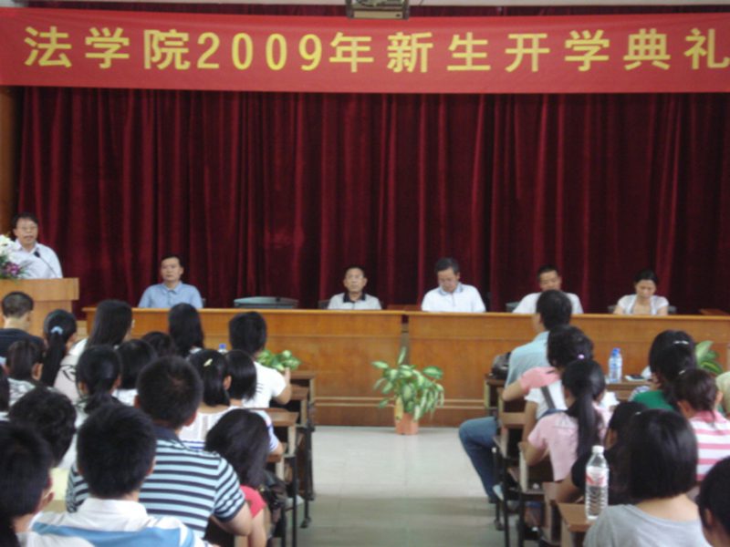 9月14日,2009年新生开学典礼在太阳集团tyc539模拟法庭举行。太阳集团tyc539终身名誉经理谭兵教授,党委徐民书记、王崇敏经理、宁清同副经理、叶英萍副经理出席会议,出席会议的还有新生班主任及辅导员老师。典礼由韩力光副书记主持。