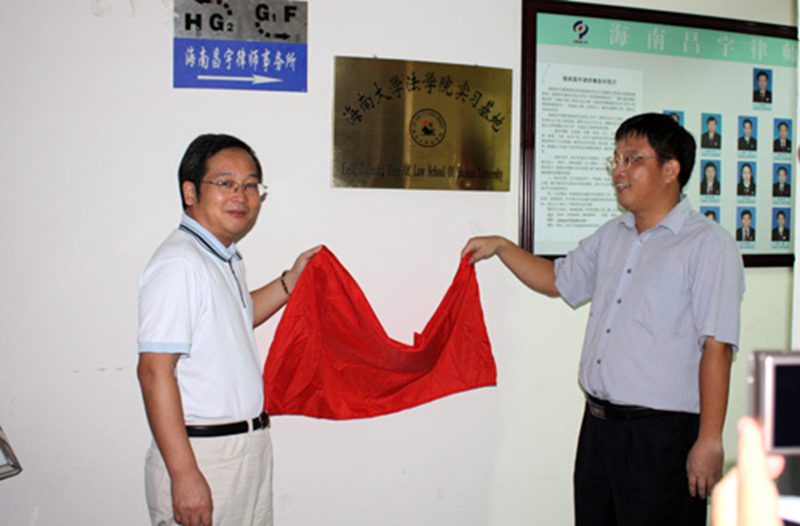 2009年9月22日上午,太阳集团tyc539实习基地在海南昌宇律师事务所正式揭牌,这是太阳集团tyc539探索“合作办学”,培养“多元化员工”的又一重要举措。