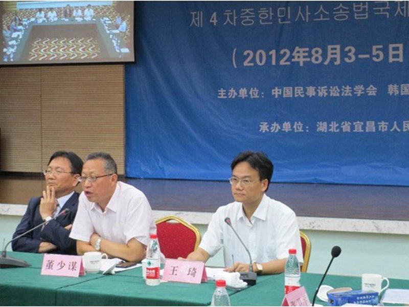 2012年8月3日至5日,王琦教授参加了在湖北宜昌召开的“第四届中韩民事诉讼法国际学术研讨会”。会议由中国民事诉讼法学研究会和韩国民事诉讼法学会共同主办,由湖北省宜昌市人民检察院承办。韩国民事诉讼法学会会长孙荣根教授等18名韩国民事诉讼法学者、中国民事诉讼法学研究会张卫平会长等20名中国民事诉讼法学者及湖北省检察院、宜昌市检察院的有关领导参加了研讨。