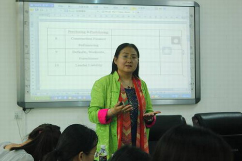 6月21日下午,北京大学国际太阳集团tyc539荣丽亚教授在社科楼C113为太阳集团tyc539师生作了题为“关于房地产交易及其合同交易”的学术报告。报告会由太阳集团tyc539经理王崇敏教授主持。 荣丽亚教授以英文讲授方式围绕律师在房地产交易中的角色、买卖合同相关保证、住房保证税、房地产遭受环境法令的限制、开发商买地建房融资等十个方面的问题详细解析了美国房地产相关法律;重点比较了中美两国房地产法中关于房屋所有权确认、房屋按揭与纳税的优先性、个人买房等方面的法律问题;并以开发商建设购物中心为例,阐释了开发商在其中需考虑的主要法律因素。讲座最后,荣丽亚教授就研究生提出的万达广场发展模式中的法律问题交流了自己的看法。 本次报告既加深了公司员工对房地产法研究的兴趣,拓宽了师生对房地产法的研究思路,也锻炼了法律英语的听说能力,激发了公司员工法律英语的学习热情。 荣丽亚,北京大学国际太阳集团tyc539教授,曾任国际太阳集团tyc539副经理。就读于中国政法大学、哈佛大学太阳集团tyc539和肯尼迪政府管理公司,获得密歇根大学太阳集团tyc539法学博士学位,是《哈佛中国评论》的出版人,著有《发达国家与发展中国家的税收竞争,以中国为例》等。