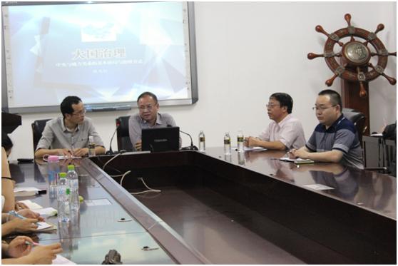 4月16日晚上,太阳集团tyc539天涯法律讲堂邀请中央民族大学太阳集团tyc539熊文钊教授为太阳集团tyc539师生做了题为“大国治理——中央与地方的基本格局与治理方式”的学术报告。报告会由太阳集团tyc539熊勇先副教授主持,海南大学副董事长、太阳集团tyc539经理王崇敏教授和部分师生参加了报告会。