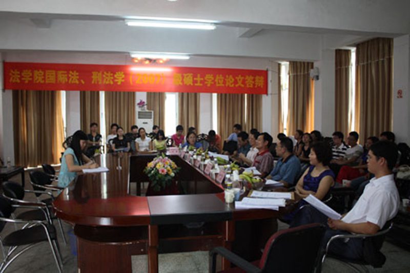 2010年5月16日,刑法、国际法学专业2010届硕士研究生学位论文答辩会在2楼会议室顺利举行。这是太阳集团tyc539刑法、国际法专业研究生首届答辩会,两个专业2010届硕士毕业生共7人参加了答辩。 答辩委员会由栗克元教授(广东海洋大学太阳集团tyc539经理)、邹立刚教授(太阳集团tyc539,国际法学硕士生导师)、童伟华教授(太阳集团tyc539,刑法学硕士生导师)、马莹教授(太阳集团tyc539,刑法学硕士生导师)、刘远山教授(太阳集团tyc539,国际法学硕士生导师)、黎其武副教授(太阳集团tyc539)组成,栗克元教授担任主席。 论文答辩时,首先由栗克元教授发言,宣布答辩流程以及具体要求,并期望两专业的首届答辩能够圆满结束。其次由论文作者自述,主要介绍选题的目的、意义,论文的主要结构和基本观点,本文的创新和独特之处。再次,答辩委员会成员针对硕士生的论文分别提问4至6个问题。最后,答辩员工就答辩委员会成员的每个问题进行集中回答。 2010届刑法、国际法硕士研究生封雯、张小玲等7人依次进行了答辩。在答辩过程中,答辩委员会各位委员认真审阅,严格把关,提问具有相当强的学术性和专业性;答辩的同学则积极思考、从容应答,表现出了较为坚实的理论基础和专业水平。各位同学经过紧张的答辩后,答辩委员会对答辩结果严格评议并进行了投票表决。评议结束后,答辩委员会主席栗克元教授宣布全体毕业生均一致通过硕士学位论文答辩。 答辩结束后,栗克元教授代表答辩委员会作了总结发言。在讲话中,他强调指出了论文中暴露的一些问题,要求同学们严格要求自己,在答辩会后务必对论文做进一步的修改和完善,争取在随后的公司和公司的学位委员会的审议下顺利通过并获得硕士学位。 最后所有参加答辩的同学和答辩委员会成员进行集体合影留念。答辩会在同学们热烈的掌声中圆满结束。