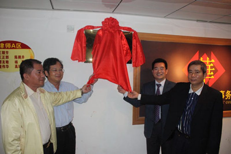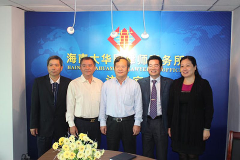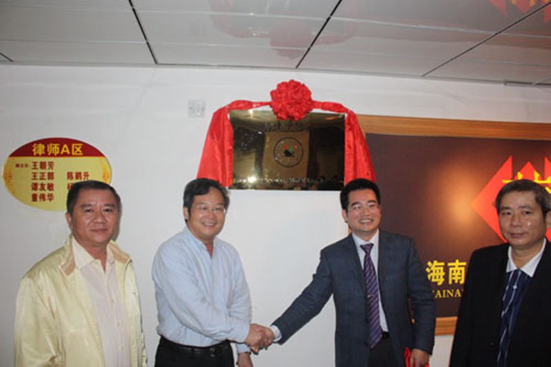 由左至右分别为海口市司法局梁毓和副局长、海南大学法公司党委书记徐民教授、海南省律师协会吴少平秘书长