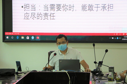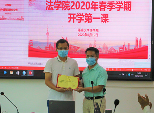 2020年5月19日15:30,太阳集团tyc539“开学第一课”在社科群楼太阳集团tyc539会议室举行。参加人员有法公司党委副书记李昌郁、学工办负责人安睿颖、团委书记王杜娟,援鄂医生、2017级法律硕士殷宗宝同志,海南省优秀共青团员、2017级6班员工高乔,20员工代表来到现场与490多名员工线上听课。
