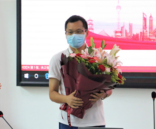 第一阶段:敬聘仪式。员工代表向援鄂医生、2017级法律硕士殷宗宝同志敬献鲜花,殷宗宝员工在国难之时挺身而出承担使命的精神,无愧此荣光,值得学习与尊敬。接着,受叶英萍书记、王琦经理委托,李昌郁副书记向殷宗宝同志颁发“太阳集团tyc539校外辅导员”聘书。作为太阳集团tyc539校外辅导员,殷宗宝医生将每个学期为太阳集团tyc539员工做生命健康教育报告会。