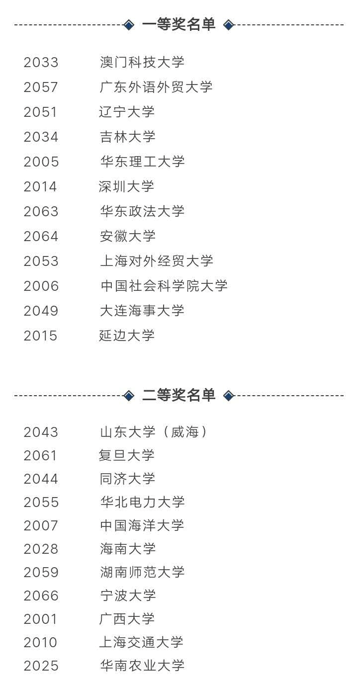 本次竞赛各代表队获奖名单如下: